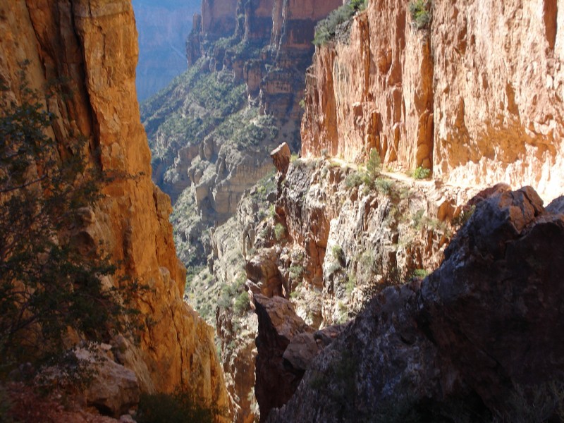 The main difference, besides the temp, was my approach to the canyon. On the previous trip in 2007 I came to the canyon an enthusiastic, but naive young ultra runner. I thought that I was strong enough to conquer the canyon with little respect for how tough the route is and how much the heat could hurt me. What I have learned in the past several years is that the ability to run these amazing routes does not entitle one to do so. We are no more than guests in an environment, where nature will run its course, regardless of our presence. So until your respect the magnitude of such an undertaking as the R2R2R, you won't get the full experience. The massiveness of the canyon walls, the peace of running down a quiet canyon trail at dawn, the enormity of passing through millions of years of geological history. All of these observations and feelings served to shape my experience this time around. We are merely a guest in nature's massive temple, a small speck in the timeline, and the worries and fears of daily life are inconsequential when you're running 42miles through the heart of one of America's greatest wonders.